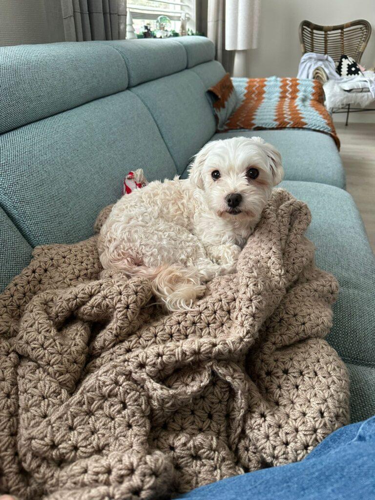 Ze woont nu in Terneuzen (vlakbij), heeft een super leuk hondenvriendje Boris, én ze heeft er ook nog twee mensenbroers en -zussen bij gekregen. Een warm gezin waar ze helemaal zichzelf mag zijn 🐶👨👩👧👦
